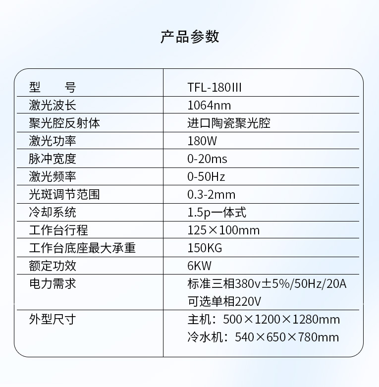 | 外型尺寸 | 主機:500×1200×1280mm 冷水機:540×650×780mm |