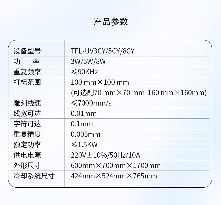 通發(fā)紫外激光打標機技術參數: