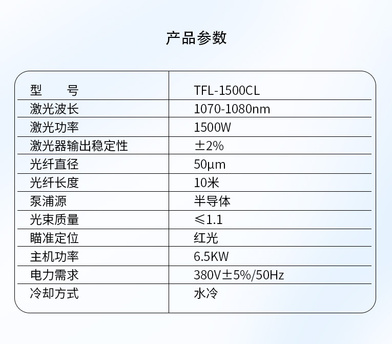 | 激光器型號 | TFL-1500CL |