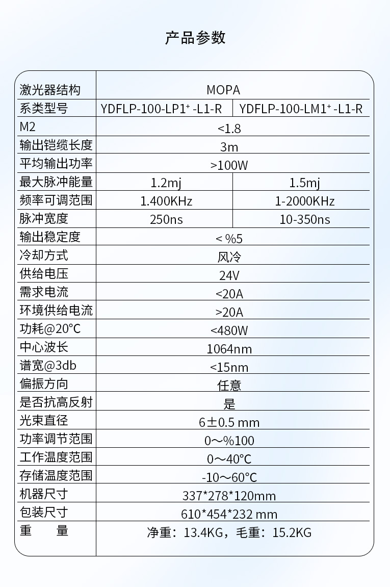 | 激光器結(jié)構(gòu) | MOPA | ||